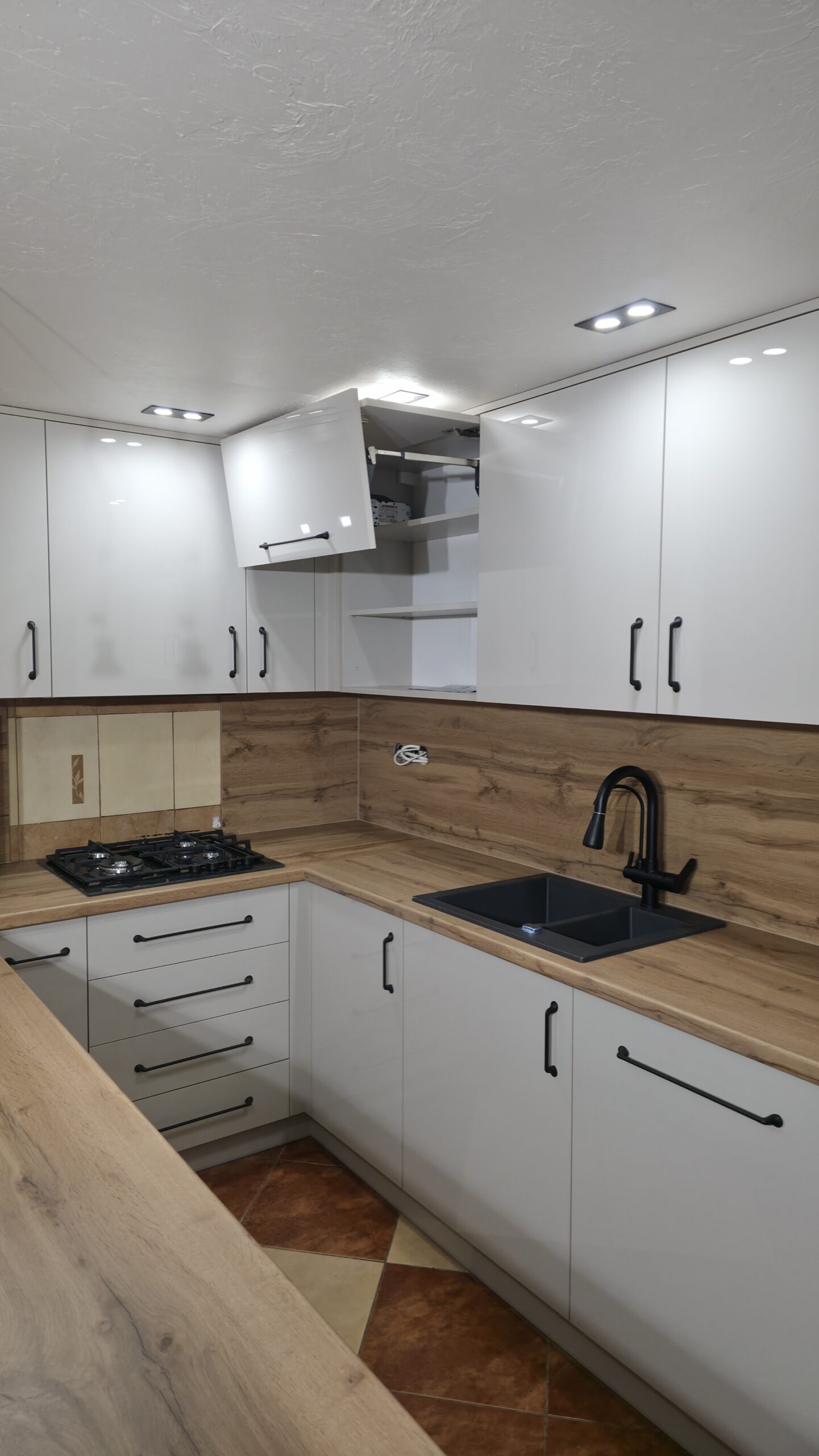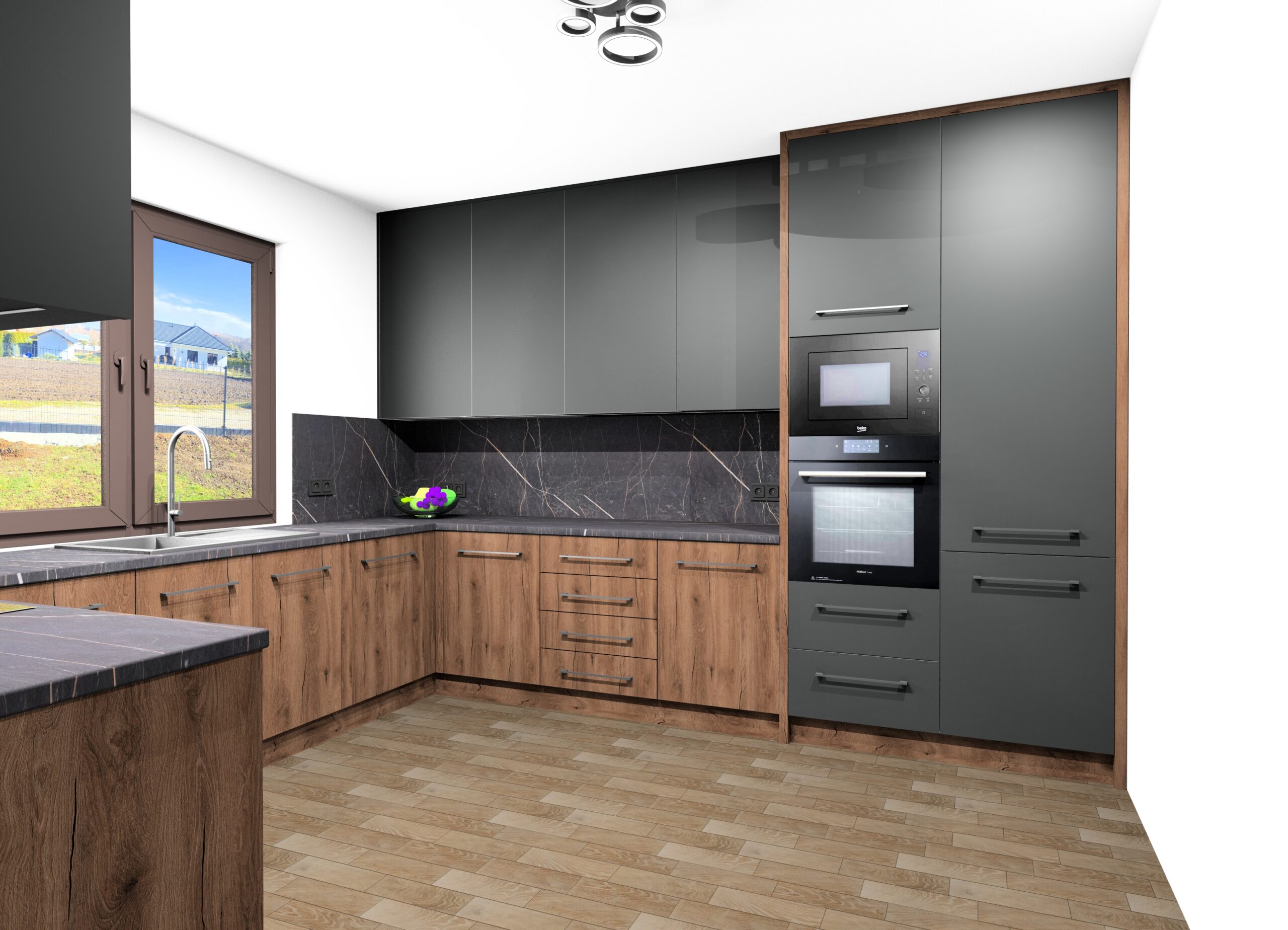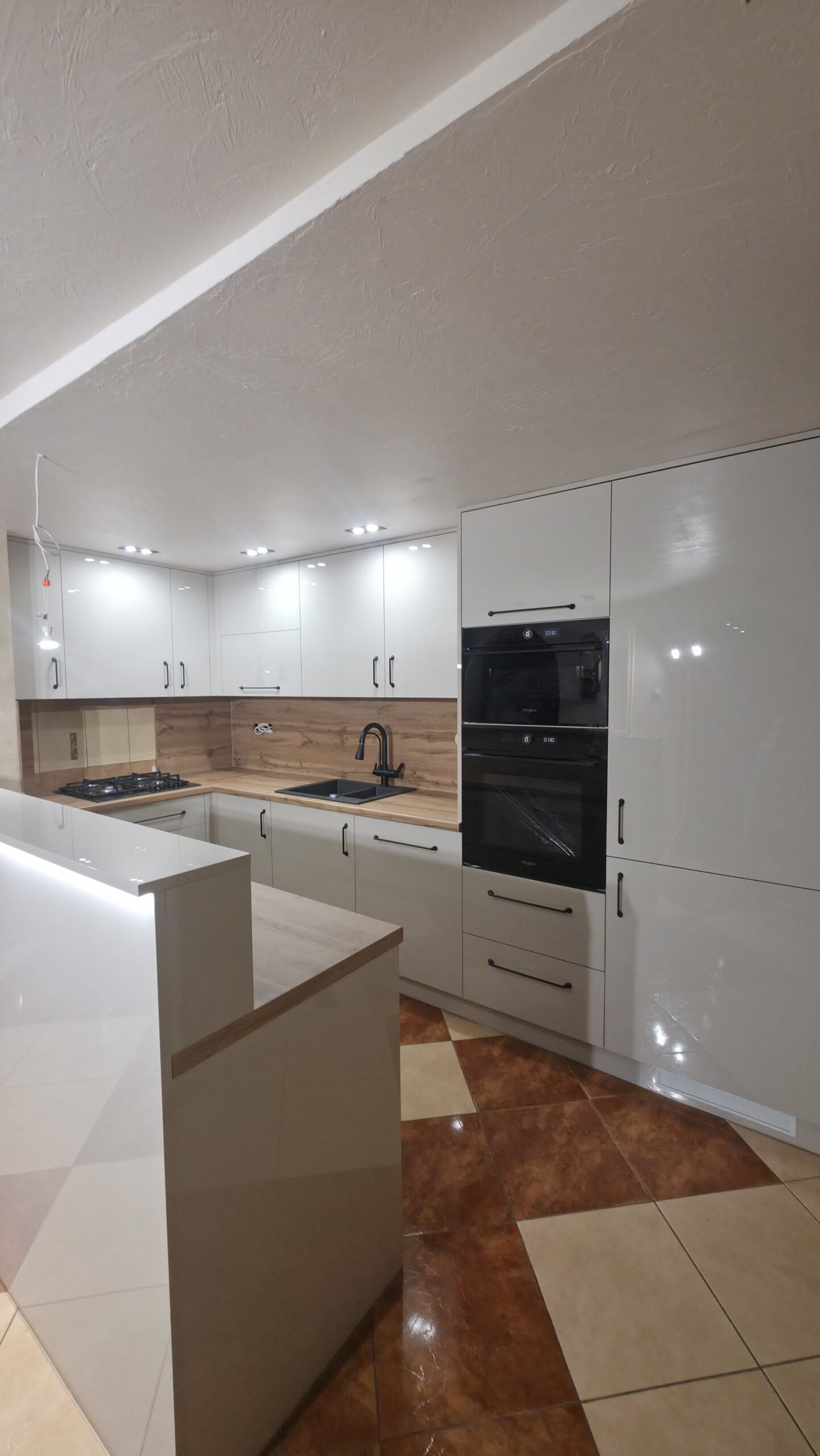 Szczególną uwagę poświęciliśmy ergonomii – wszystkie szafki zostały wyposażone w nowoczesne systemy cichego domykania, a wyspa kuchenna zapewnia dodatkową powierzchnię roboczą oraz miejsce do nieformalnych posiłków.
