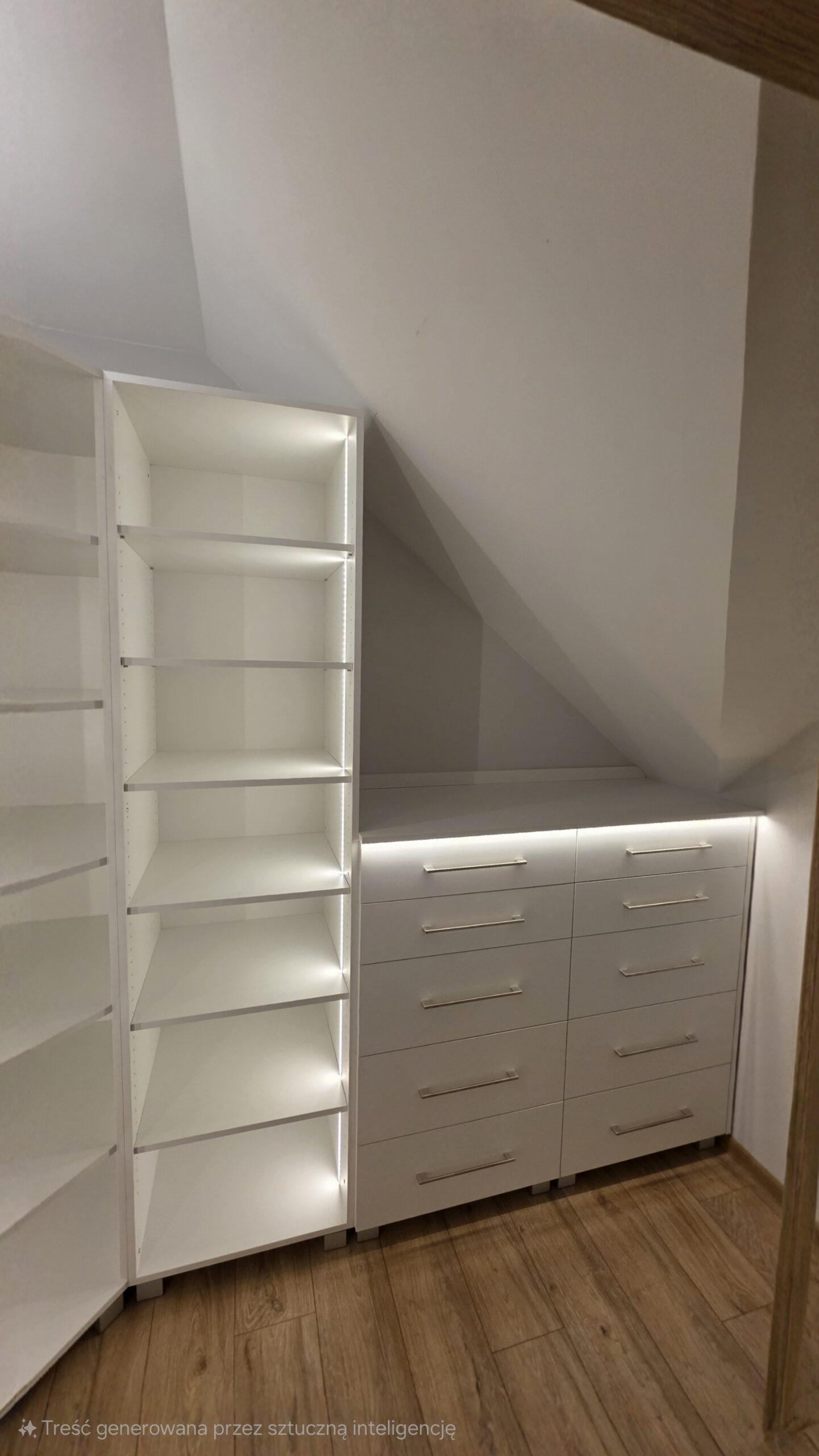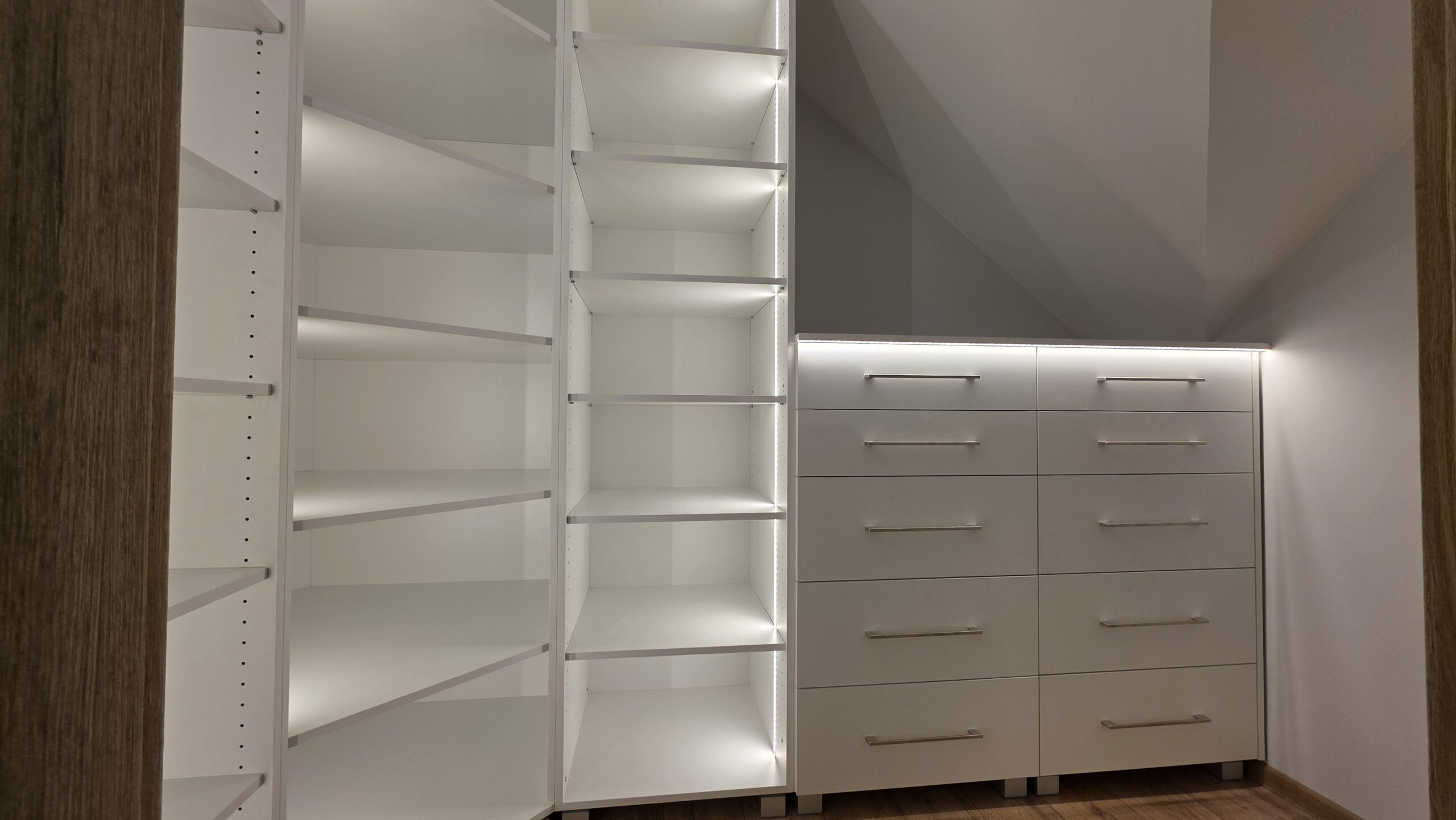 Ta nowoczesna i przestronna garderoba powstała z myślą o maksymalnym wykorzystaniu dostępnej przestrzeni oraz zapewnieniu idealnego porządku w codziennym użytkowaniu. Klientom zależało na stworzeniu miejsca, które nie tylko będzie funkcjonalne, ale także stanie się eleganckim uzupełnieniem sypialni.
